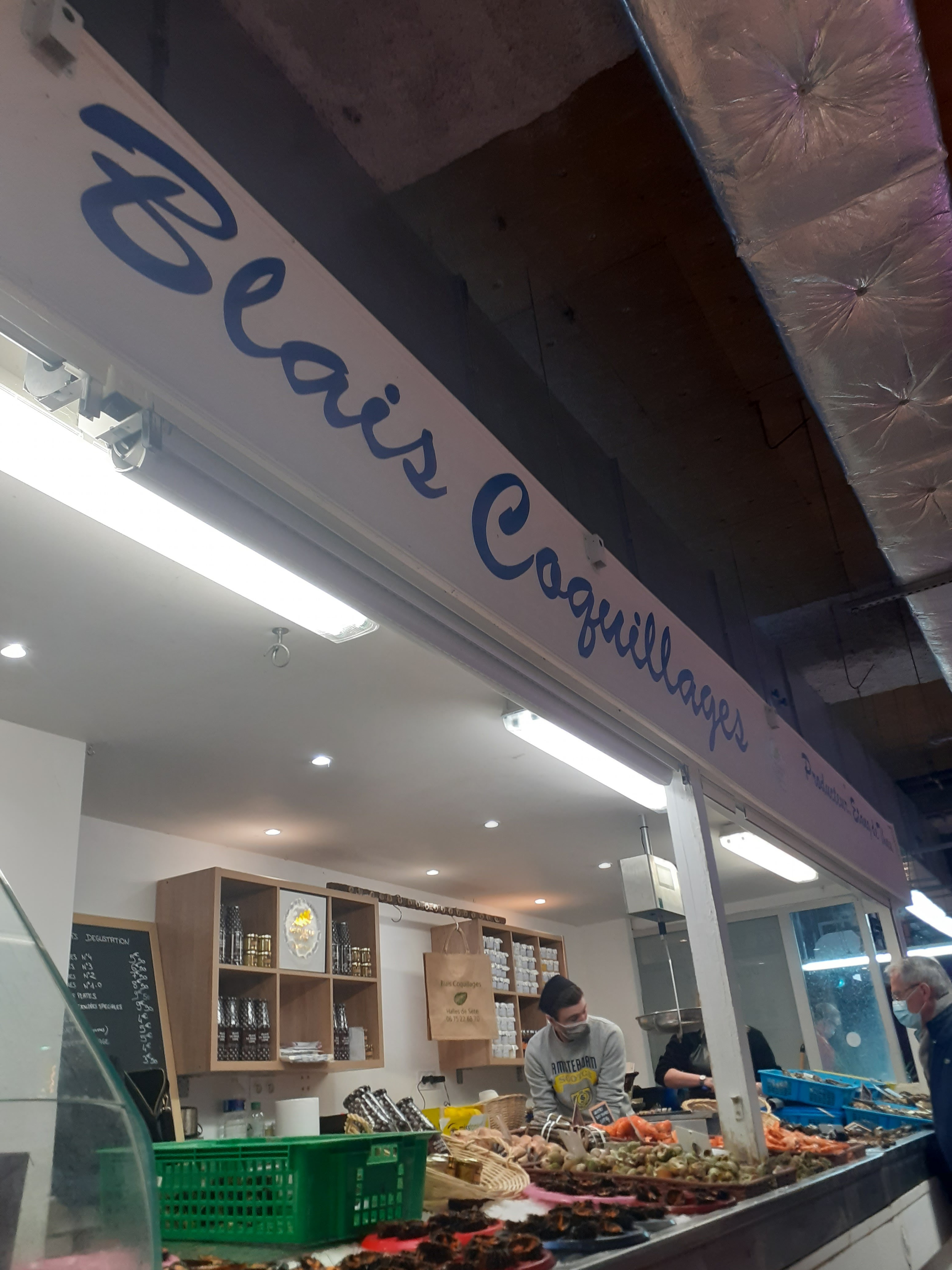 J ai adoré juste un pure bonheur de pouvoir acheter un plateau de la mer , une tielle et pouvoir la déguster au café des halles .très conviviale est chaleureux je vous le conseil car stand de produit de très bonne qualité